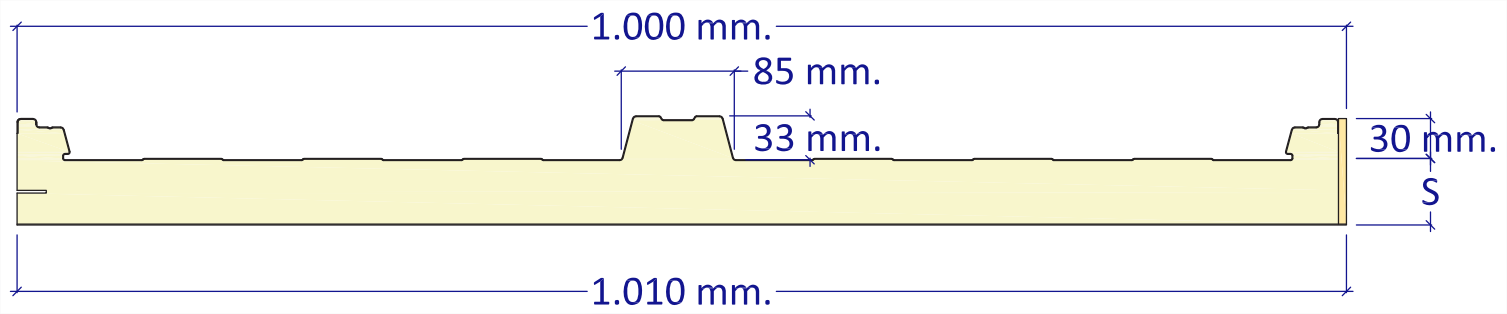 Panel formado por una lámina de acero en su cara exterior y por una lámina de poliéster en su cara interior, inyectado en línea continua con poliuretano de alta densidad creando un panel con gran aislamiento térmico. Está concebido como cerramiento de cubiertas inclinadas aplicado generalmente a granjas (exceptuando porcinas en las que aconsejamos instalar nuestro producto SPM).